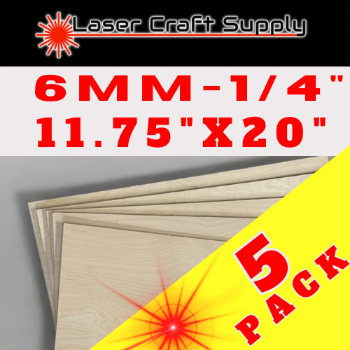 6mm (1/4") 11.75" X 20" - 5 Pack Birch Plywood