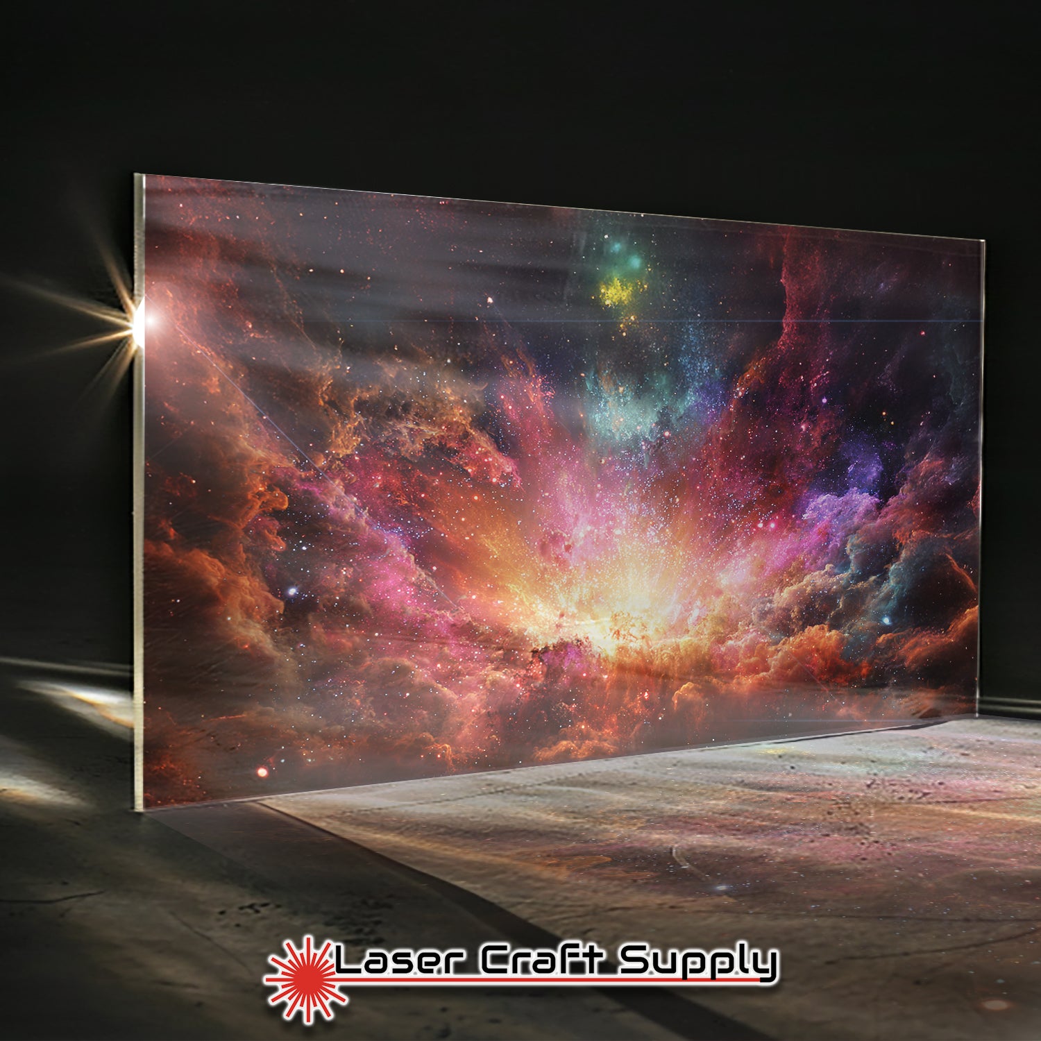 3mm Creative Cast CLEAR Acrylic: Cuts and Engraves with CO2 Laser Only, Image on Both Sides - Ones side is High Gloss and the other side Matte.