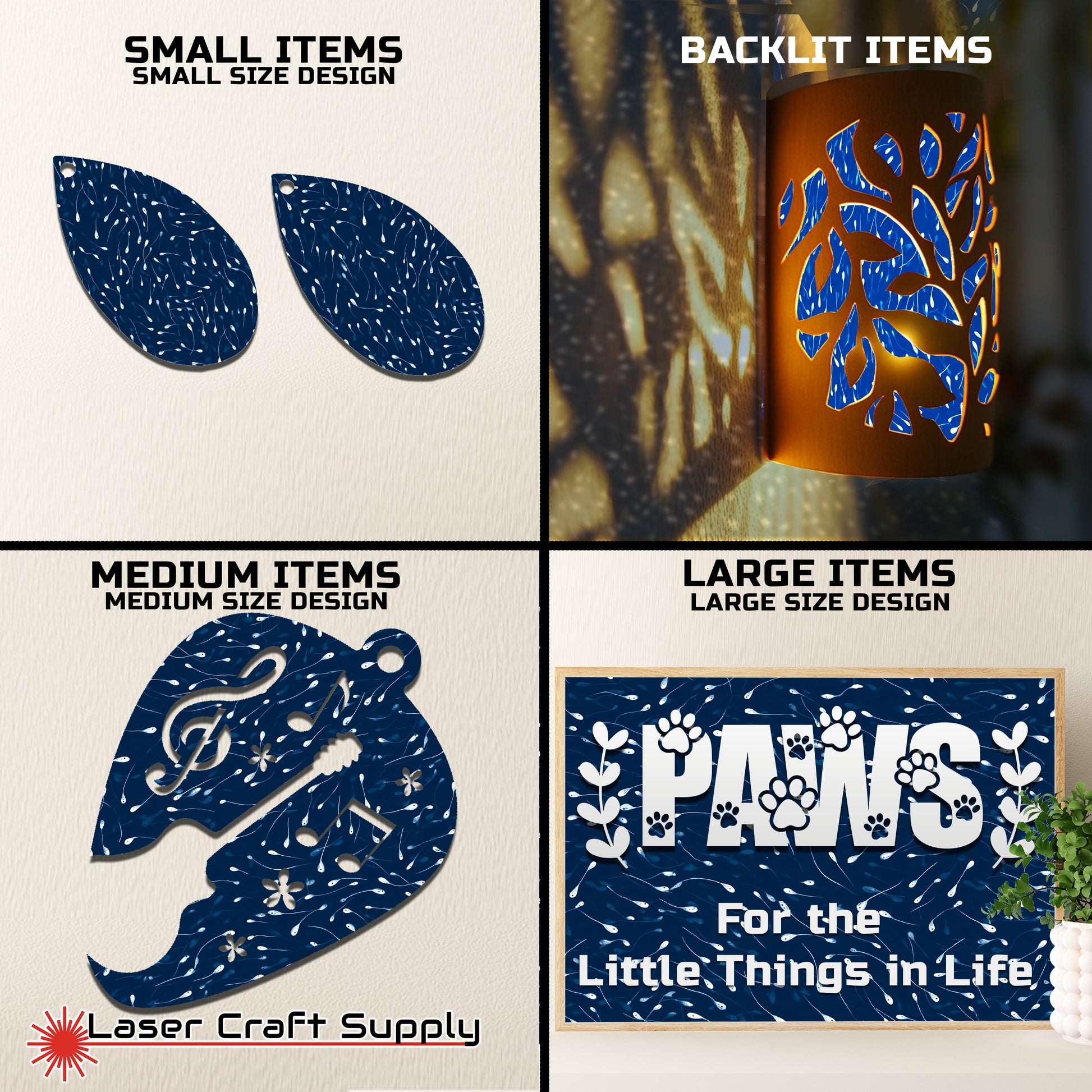 ALL SHEETS ARE 12" X 19" and Designs are available in 3 different Magnifications... Small, Medium and Large, and varies in thickness depending on the choice you make.