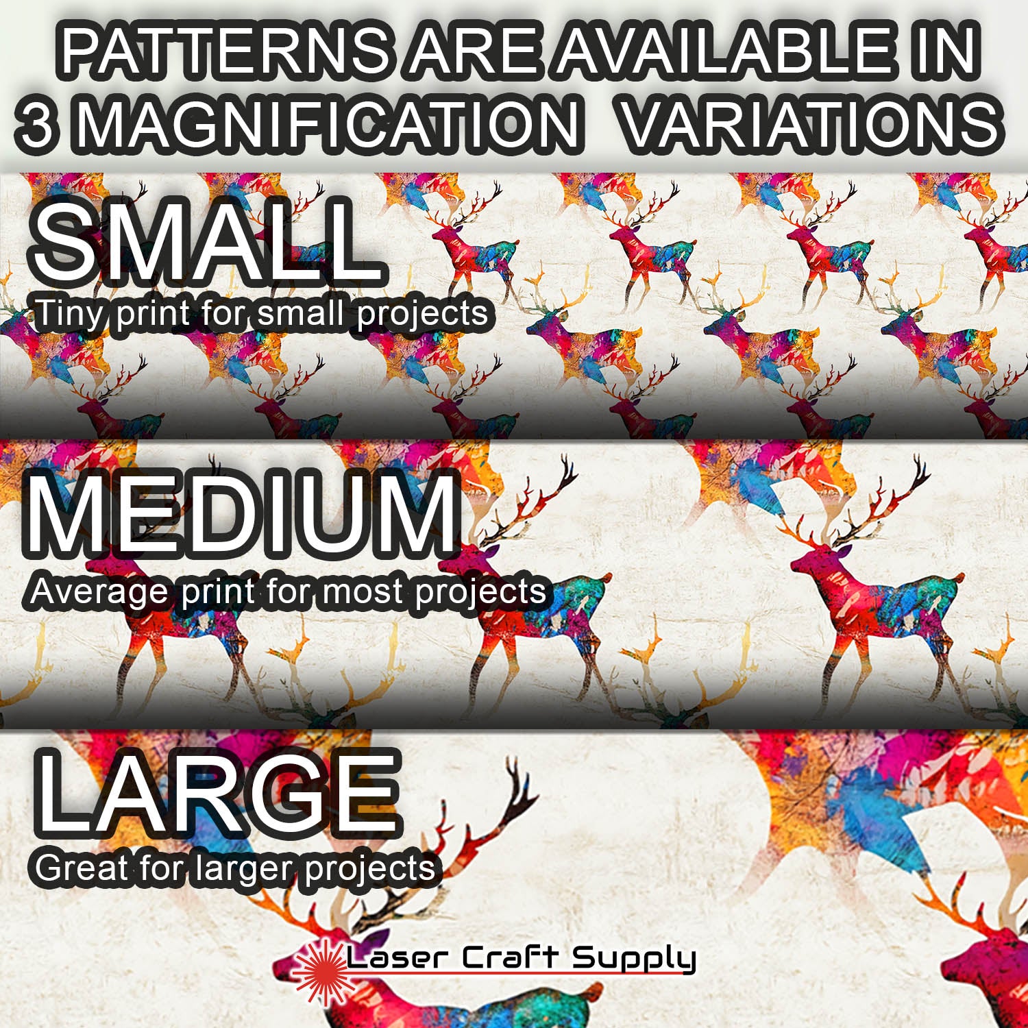 ALL SHEETS ARE 12" X 19" and Designs are available in 3 different Magnifications... Small, Medium and Large, and varies in thickness depending on the choice you make.