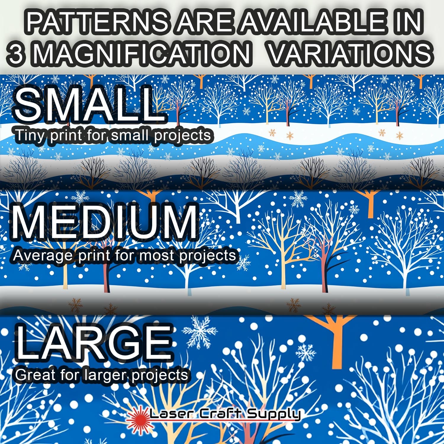 ALL SHEETS ARE 12" X 19" and Designs are available in 3 different Magnifications... Small, Medium and Large, and varies in thickness depending on the choice you make.