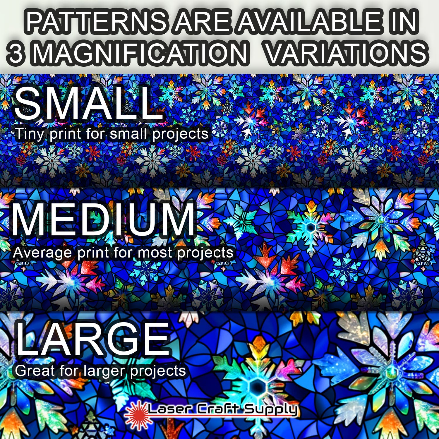 ALL SHEETS ARE 12" X 19" and Designs are available in 3 different Magnifications... Small, Medium and Large, and varies in thickness depending on the choice you make.