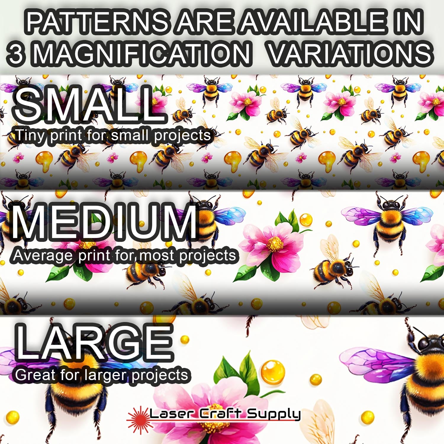 ALL SHEETS ARE 12" X 19" and Designs are available in 3 different Magnifications... Small, Medium and Large, and varies in thickness depending on the choice you make.