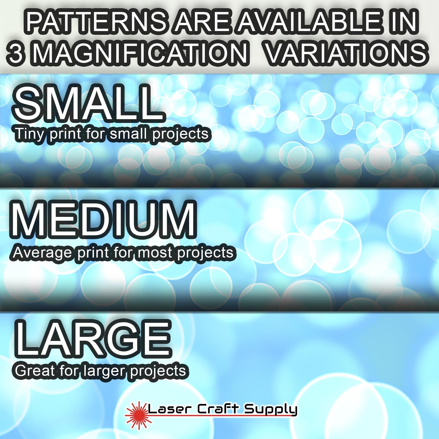 ALL SHEETS ARE 12" X 19" and Designs are available in 3 different Magnifications... Small, Medium and Large, and varies in thickness depending on the choice you make.