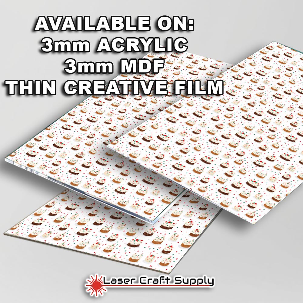 3mm MDF Wood: Cuts and Engraves with Diode and CO2 Lasers, Image on One Side or Both Sides.
