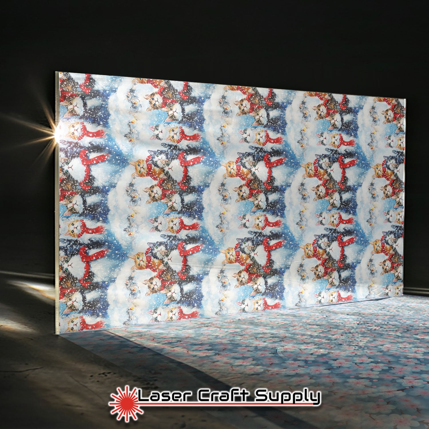 Cuts with Diode and CO2 Lasers, Image on Both Sides - One side is High Gloss and the other slightly Matte.
