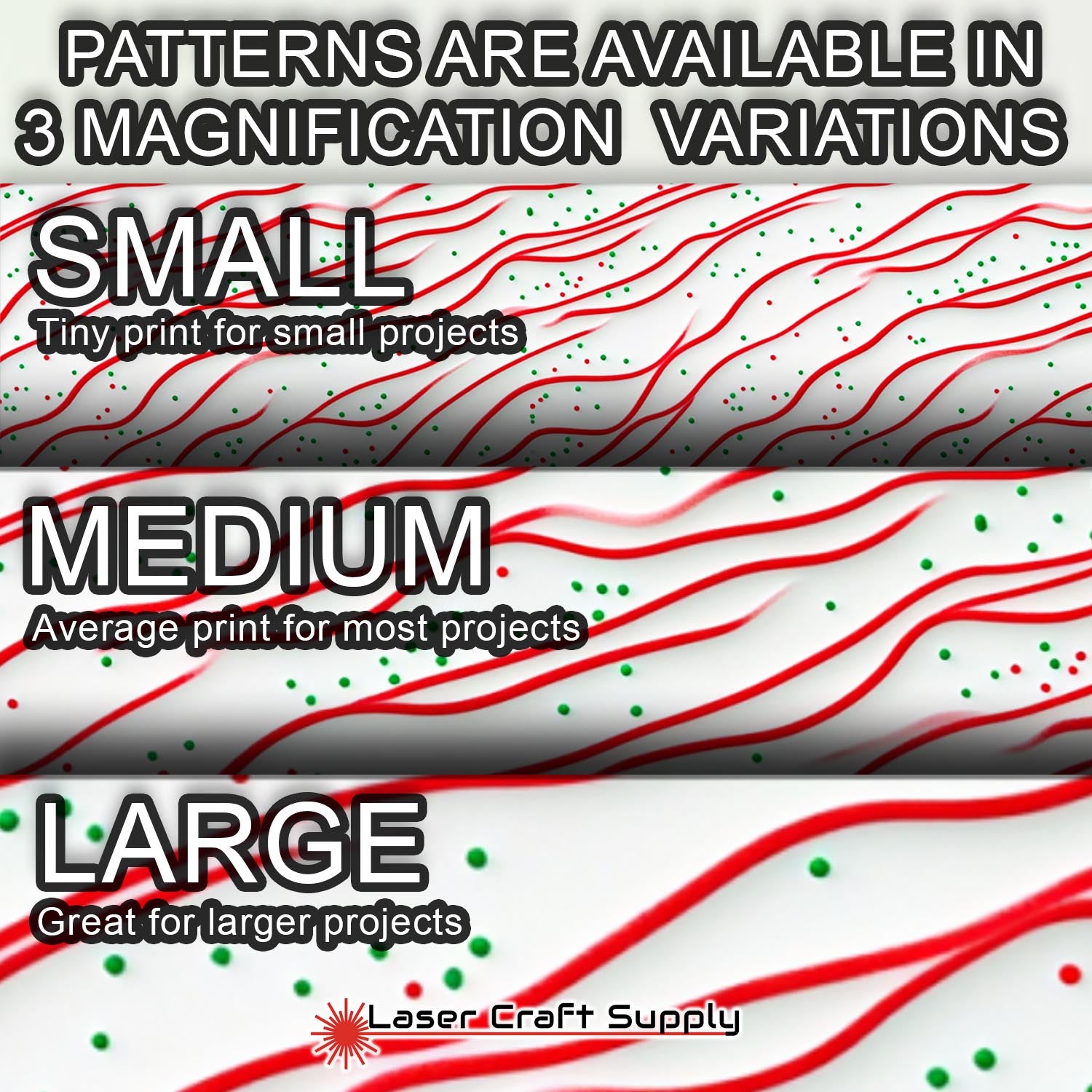 ALL SHEETS ARE 12" X 19" and Designs are available in 3 different Magnifications... Small, Medium and Large, and varies in thickness depending on the choice you make.