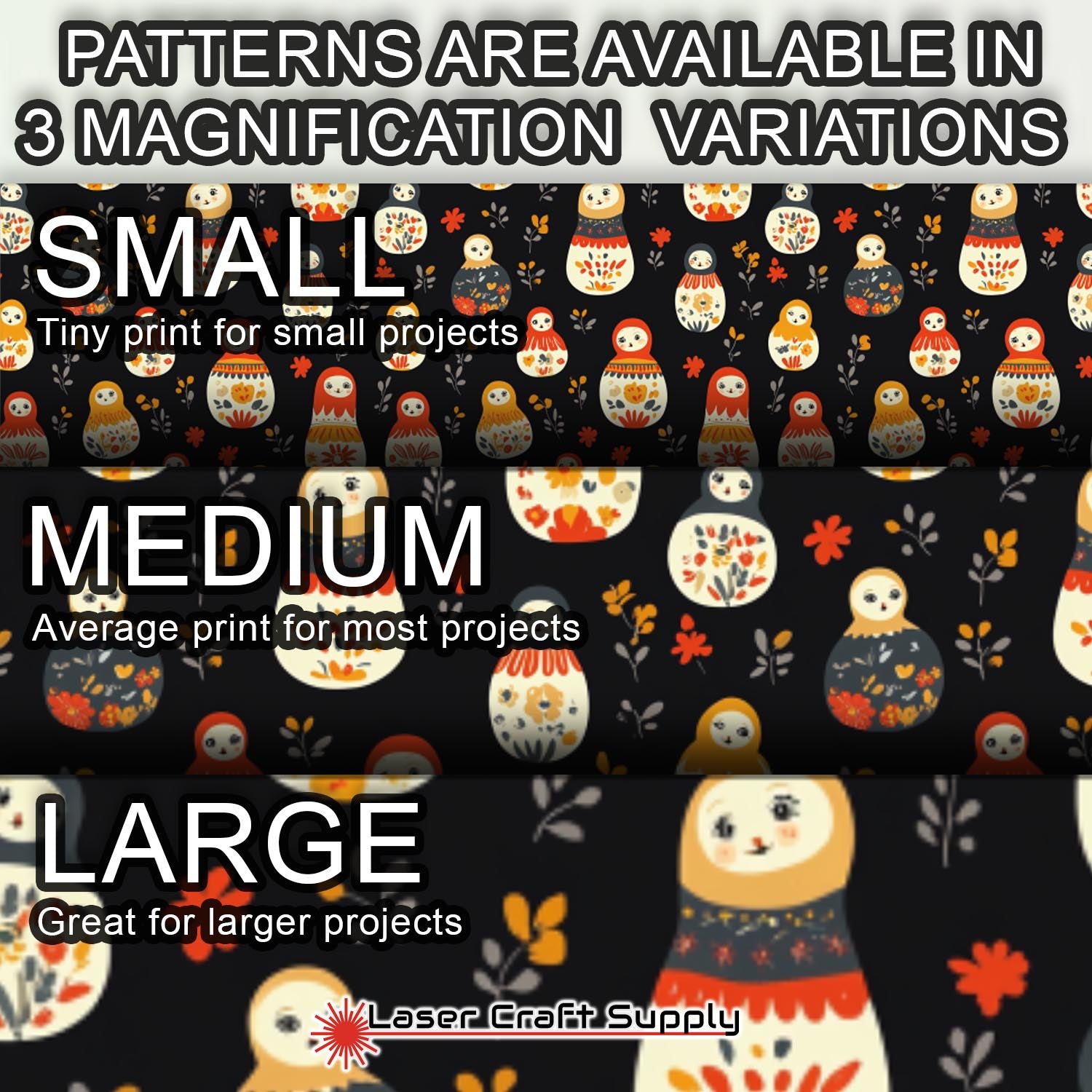 ALL SHEETS ARE 12" X 19" and Designs are available in 3 different Magnifications... Small, Medium and Large, and varies in thickness depending on the choice you make.