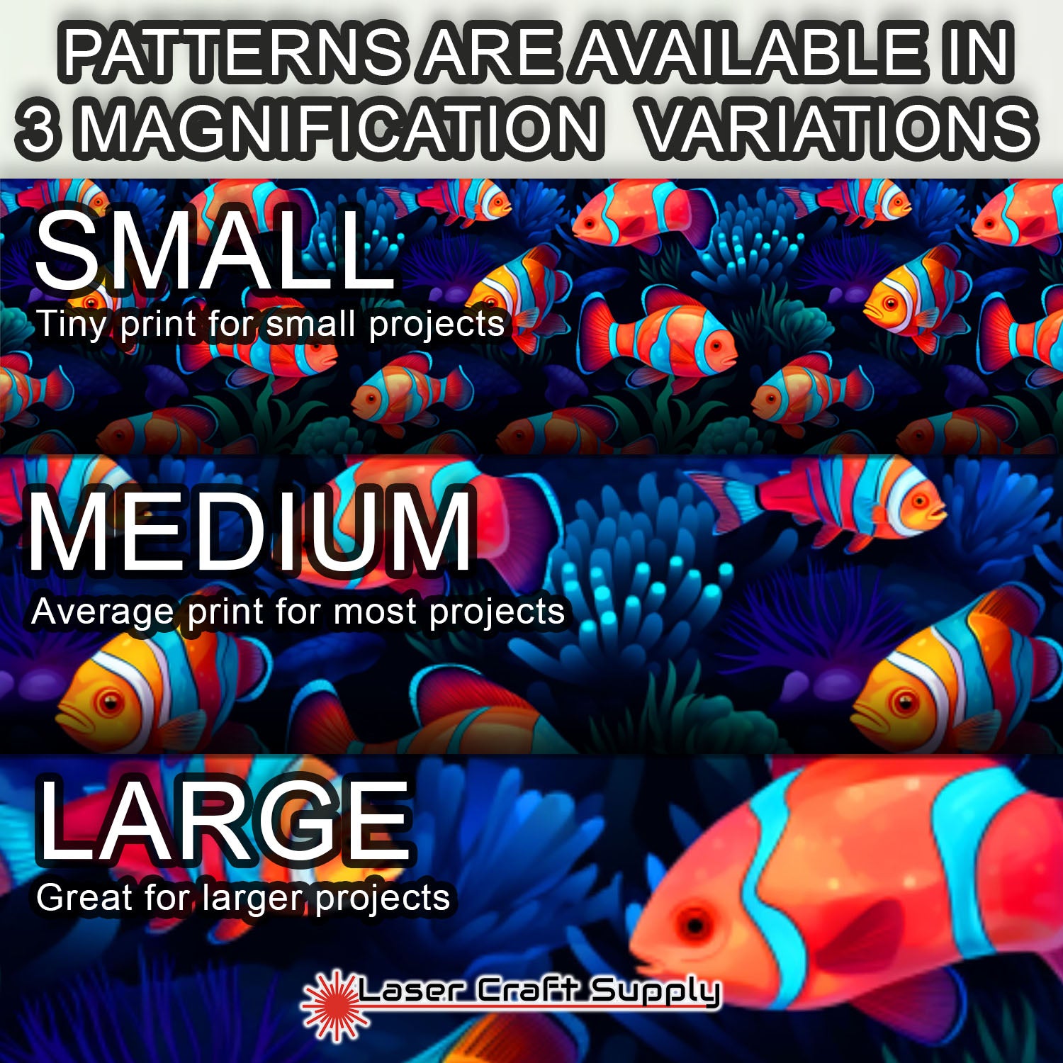 ALL SHEETS ARE 12" X 19" and Designs are available in 3 different Magnifications... Small, Medium and Large, and varies in thickness depending on the choice you make.