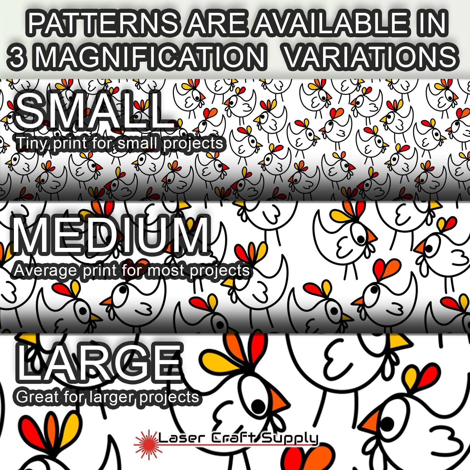 ALL SHEETS ARE 12" X 19" and Designs are available in 3 different Magnifications... Small, Medium and Large, and varies in thickness depending on the choice you make.