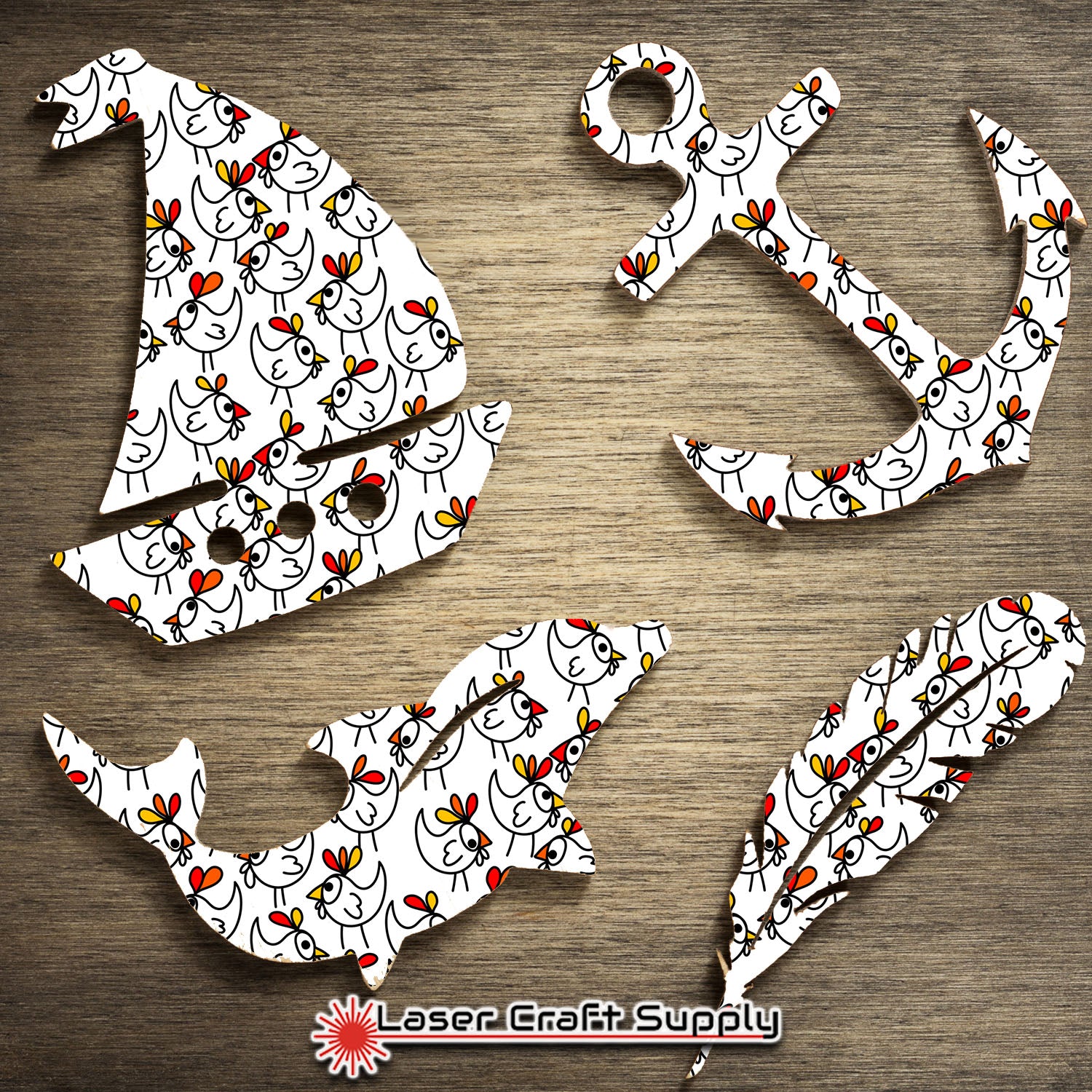 3mm MDF Wood: Cuts and Engraves with Diode and CO2 Lasers, Image on One Side or Both Sides.