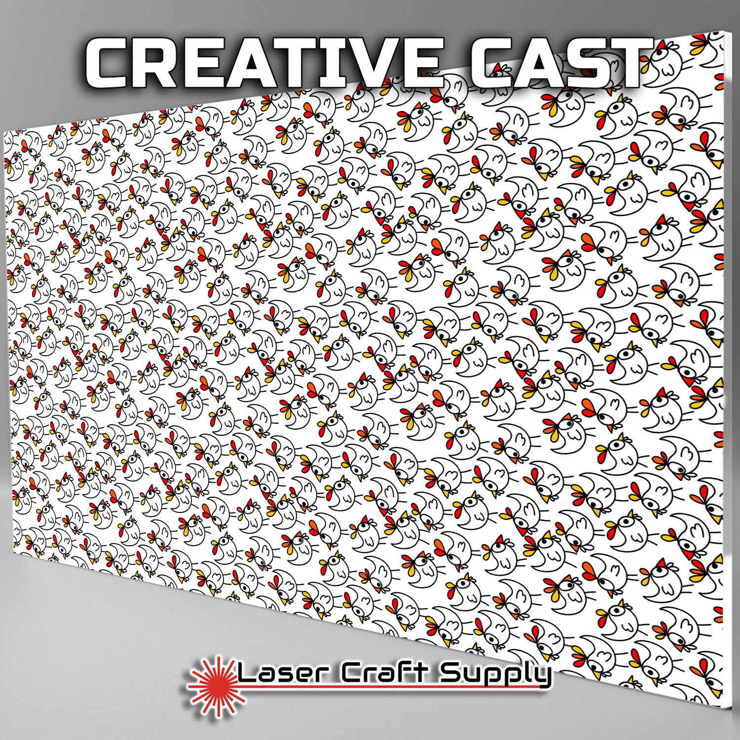 3mm Creative Cast WHITE Acrylic: Cuts and Engraves with CO2 Lasers only, Image on One Side or Both Sides - Both sides are slightly Matte.