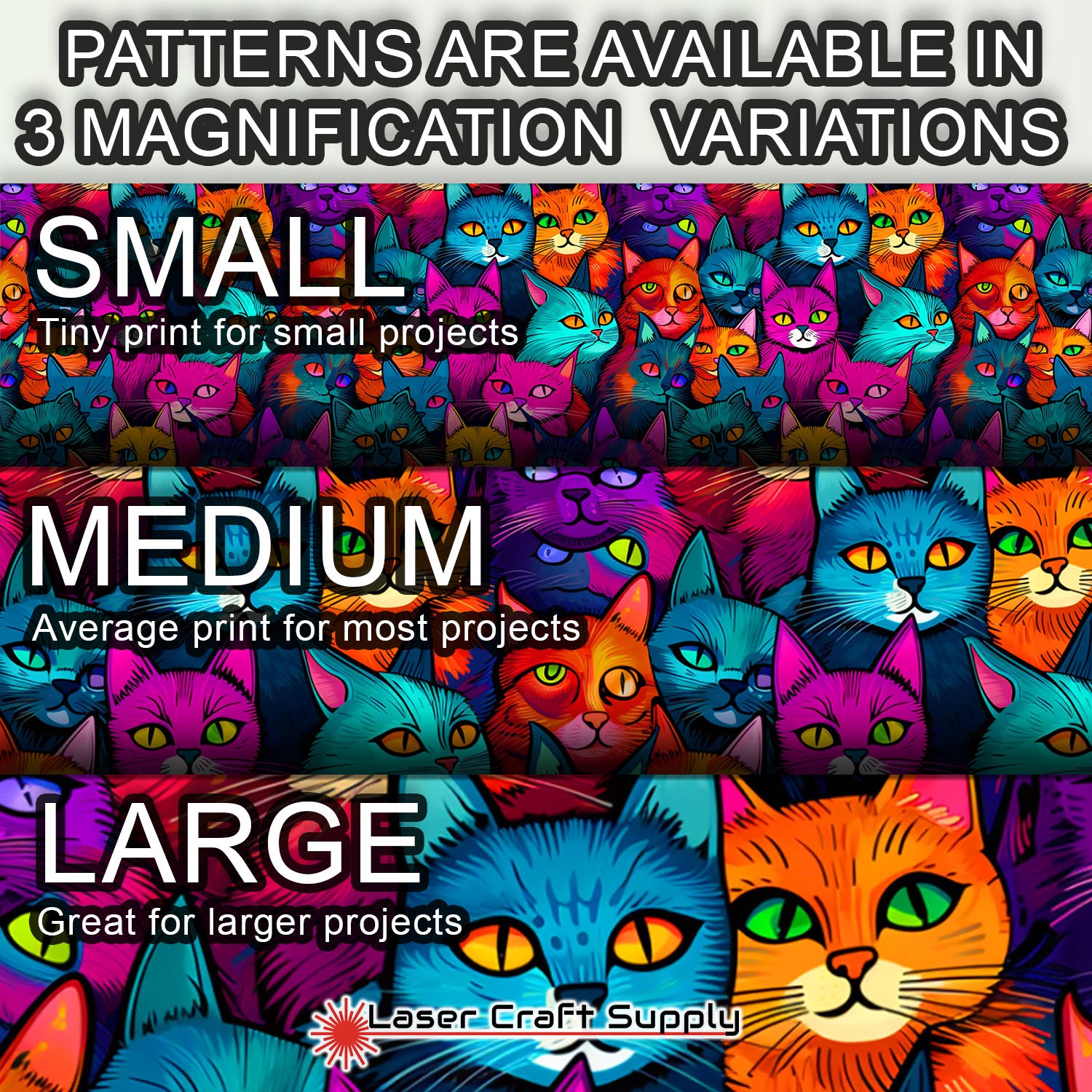 ALL SHEETS ARE 12" X 19" and Designs are available in 3 different Magnifications... Small, Medium and Large, and varies in thickness depending on the choice you make.