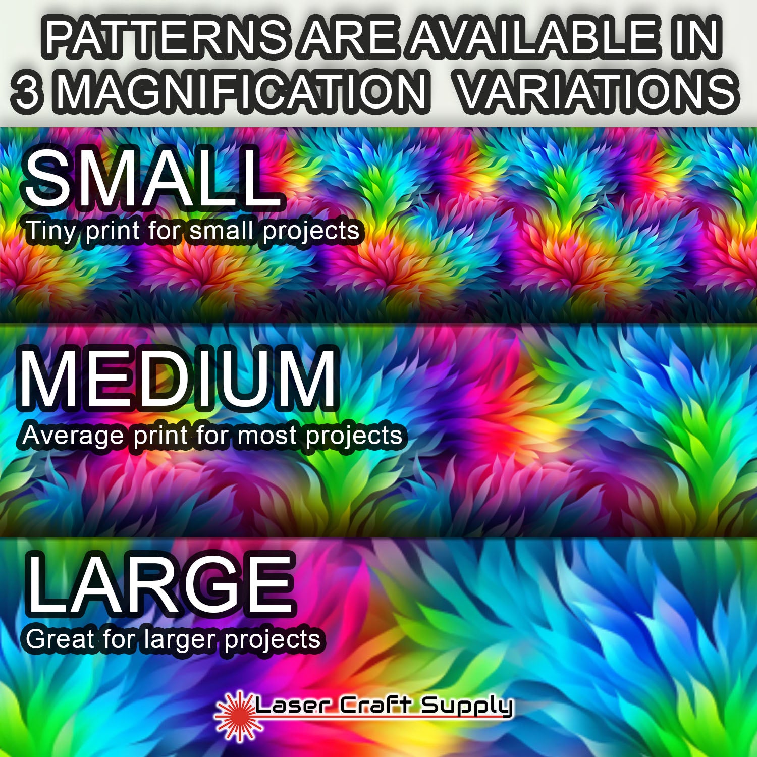 ALL SHEETS ARE 12" X 19" and Designs are available in 3 different Magnifications... Small, Medium and Large, and varies in thickness depending on the choice you make.