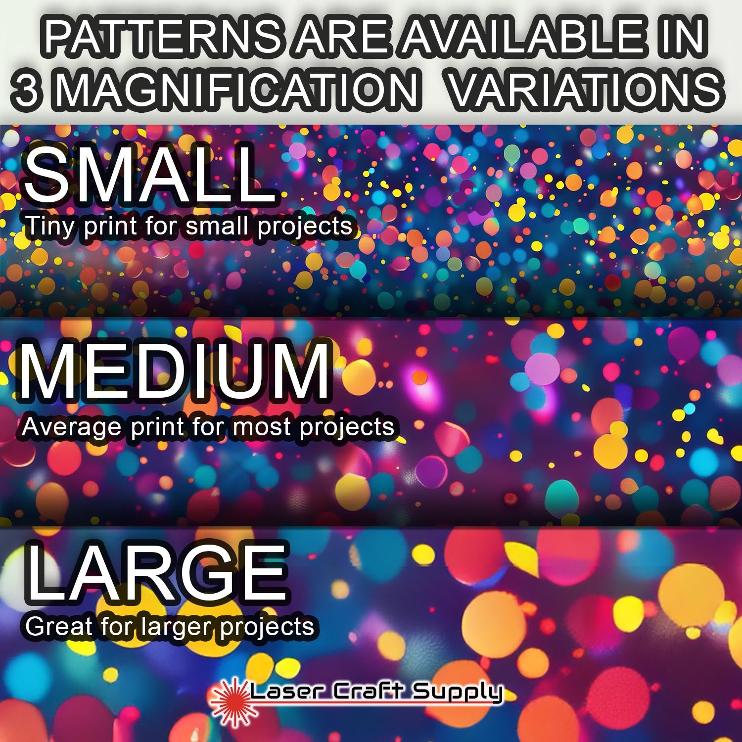 ALL SHEETS ARE 12" X 19" and Designs are available in 3 different Magnifications... Small, Medium and Large, and varies in thickness depending on the choice you make.