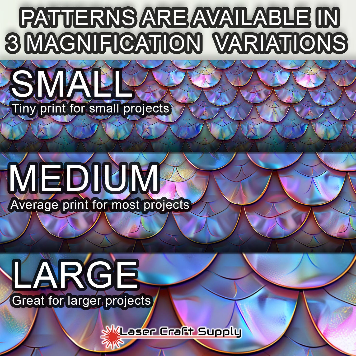 ALL SHEETS ARE 12" X 19" and Designs are available in 3 different Magnifications... Small, Medium and Large, and varies in thickness depending on the choice you make.