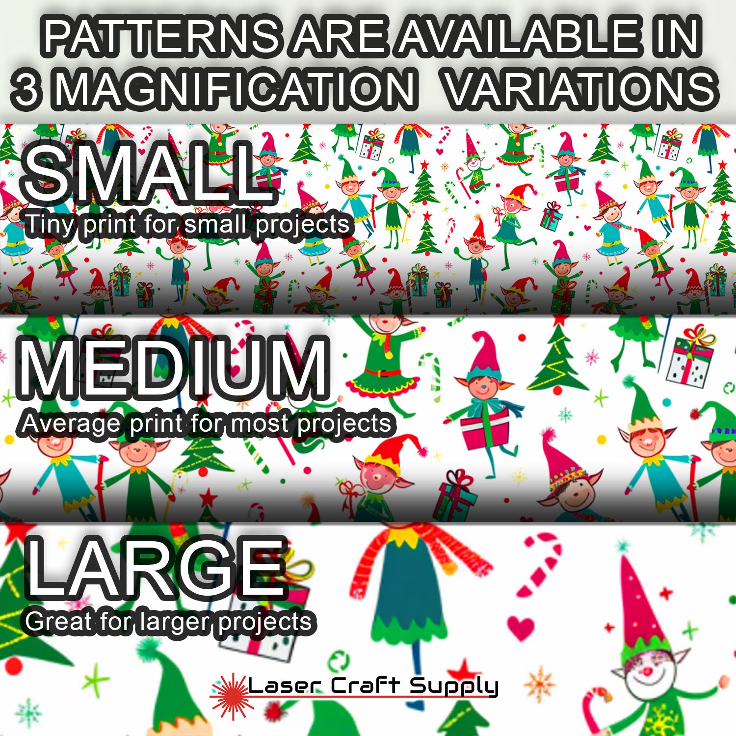 ALL SHEETS ARE 12" X 19" and Designs are available in 3 different Magnifications... Small, Medium and Large, and varies in thickness depending on the choice you make.