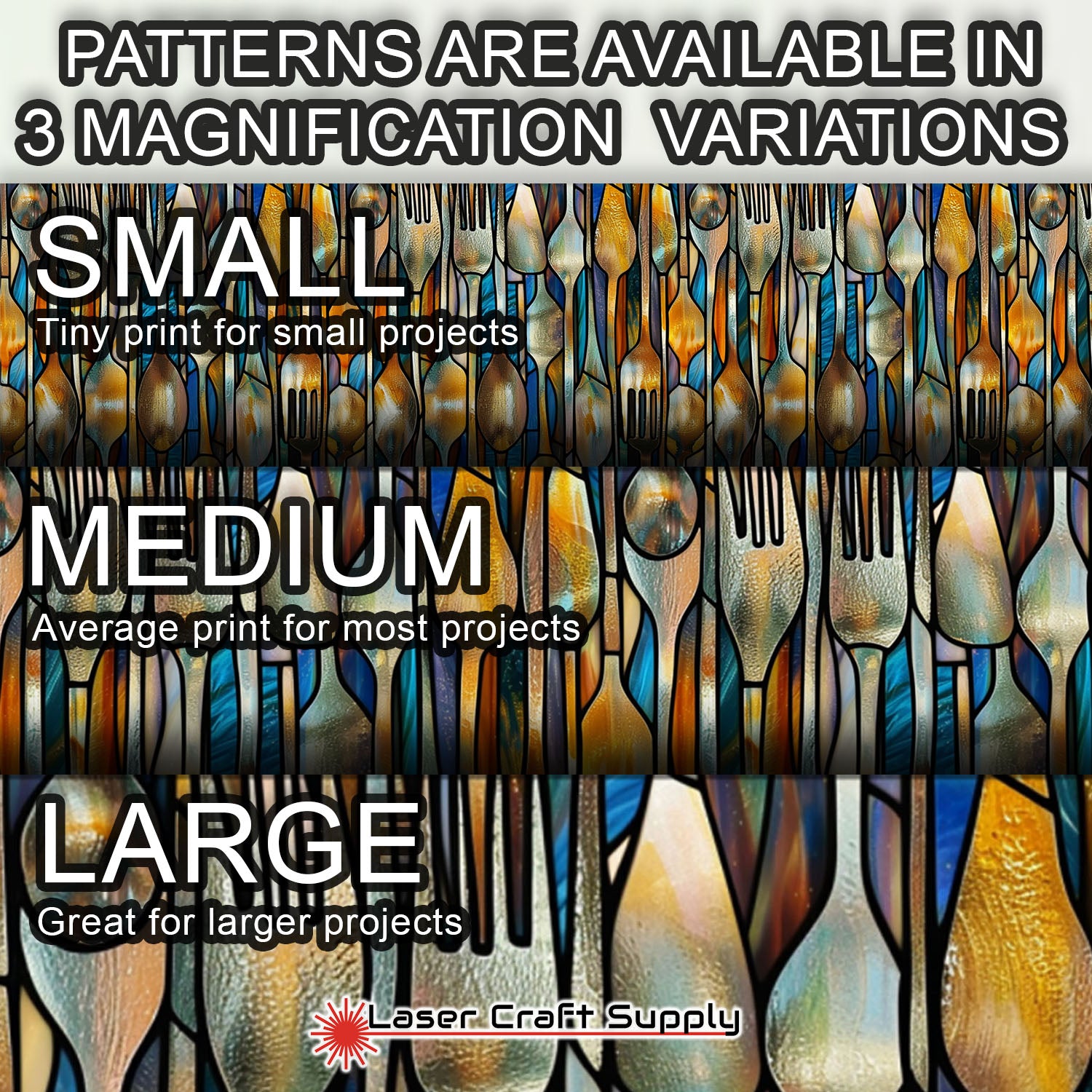 ALL SHEETS ARE 12" X 19" and Designs are available in 3 different Magnifications... Small, Medium and Large, and varies in thickness depending on the choice you make.