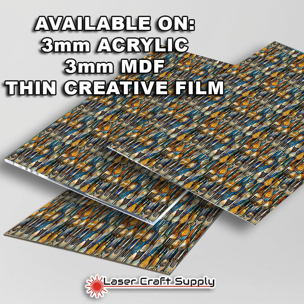 3mm MDF Wood: Cuts and Engraves with Diode and CO2 Lasers, Image on One Side or Both Sides.