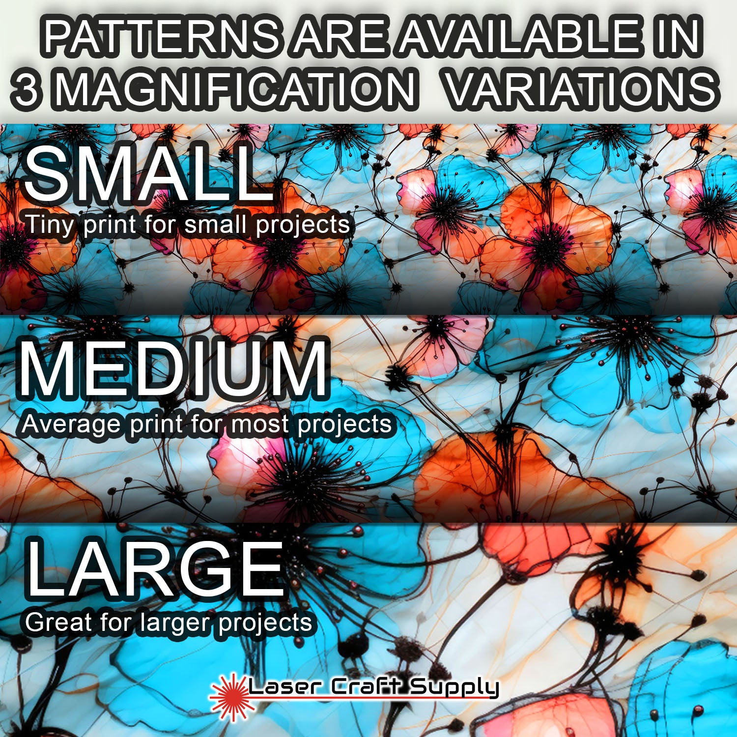 ALL SHEETS ARE 12" X 19" and Designs are available in 3 different Magnifications... Small, Medium and Large, and varies in thickness depending on the choice you make.