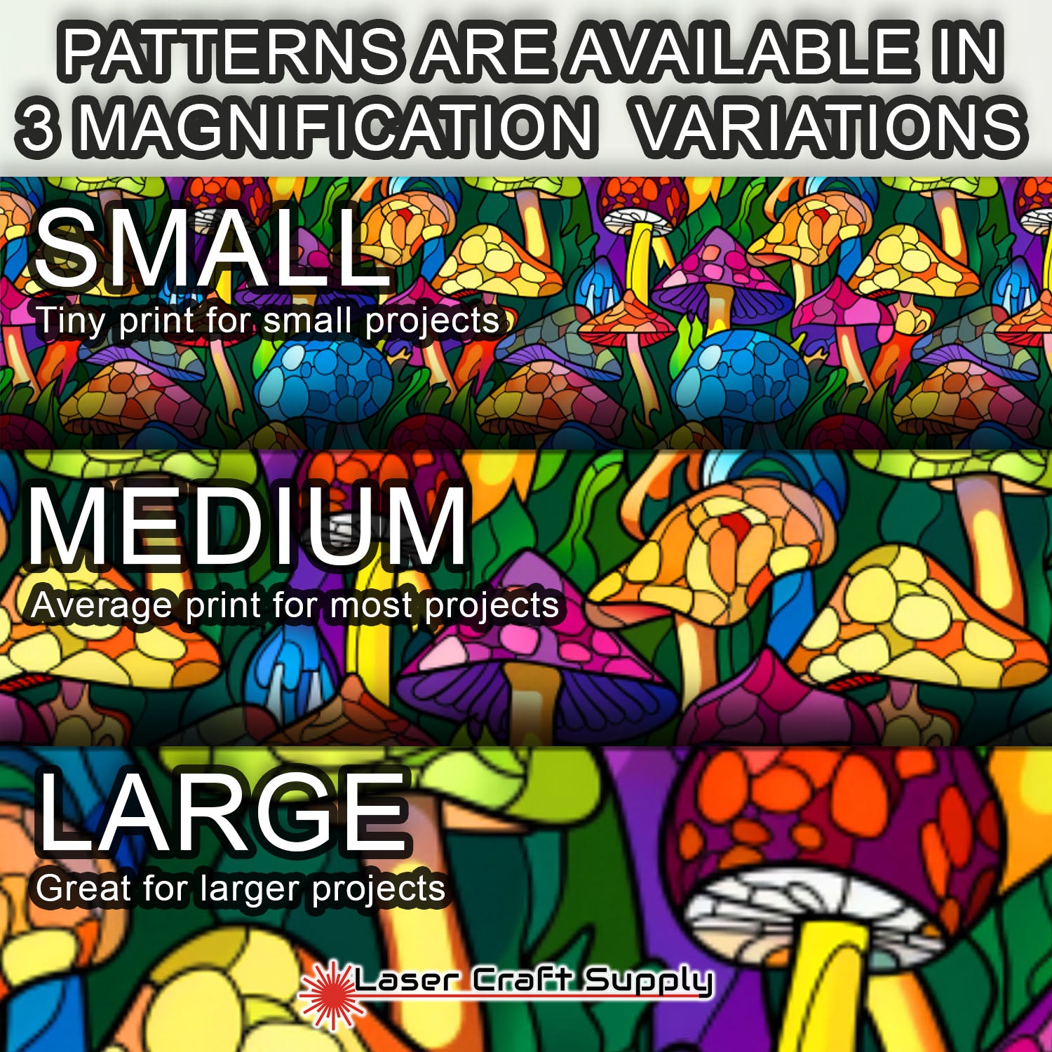 ALL SHEETS ARE 12" X 19" and Designs are available in 3 different Magnifications... Small, Medium and Large, and varies in thickness depending on the choice you make.
