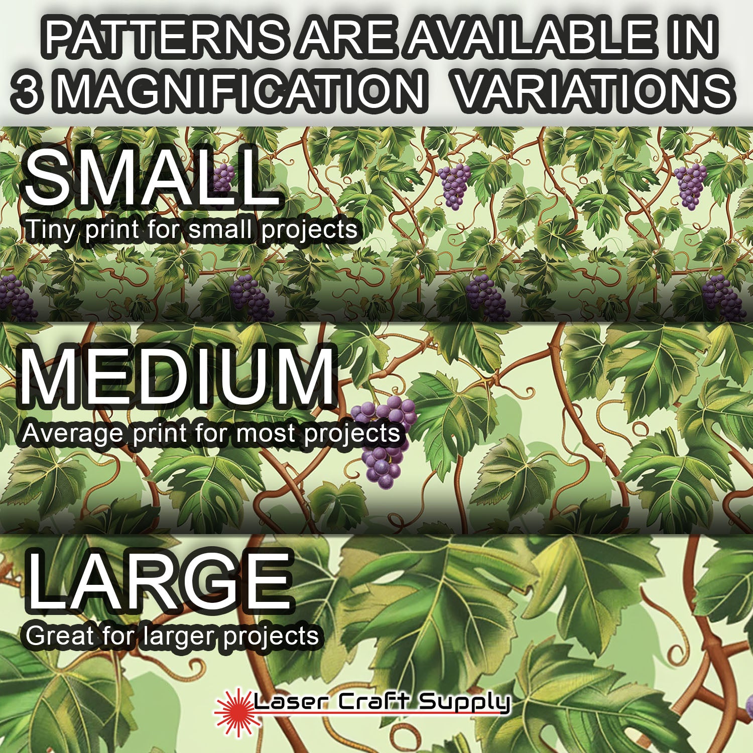 ALL SHEETS ARE 12" X 19" and Designs are available in 3 different Magnifications... Small, Medium and Large, and varies in thickness depending on the choice you make.