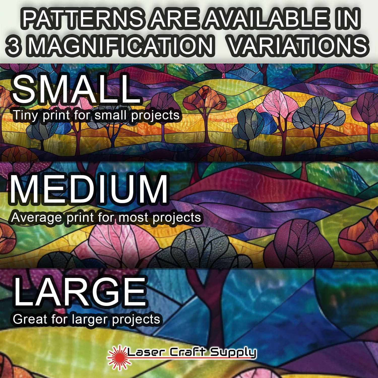 ALL SHEETS ARE 12" X 19" and Designs are available in 3 different Magnifications... Small, Medium and Large, and varies in thickness depending on the choice you make.