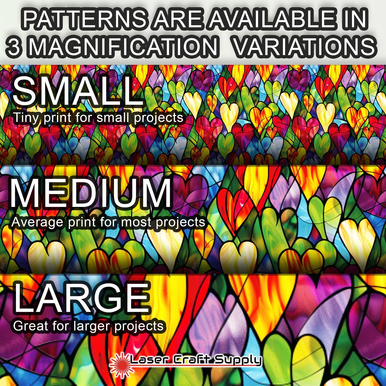 ALL SHEETS ARE 12" X 19" and Designs are available in 3 different Magnifications... Small, Medium and Large, and varies in thickness depending on the choice you make.