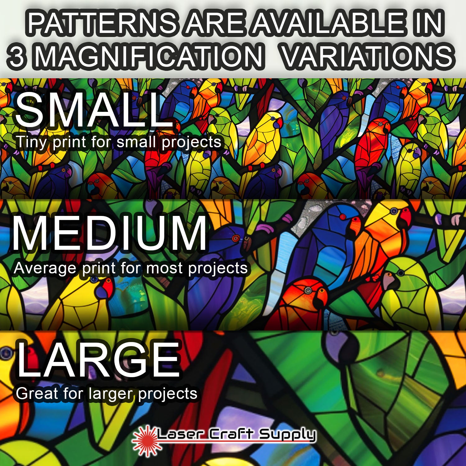 ALL SHEETS ARE 12" X 19" and Designs are available in 3 different Magnifications... Small, Medium and Large, and varies in thickness depending on the choice you make.