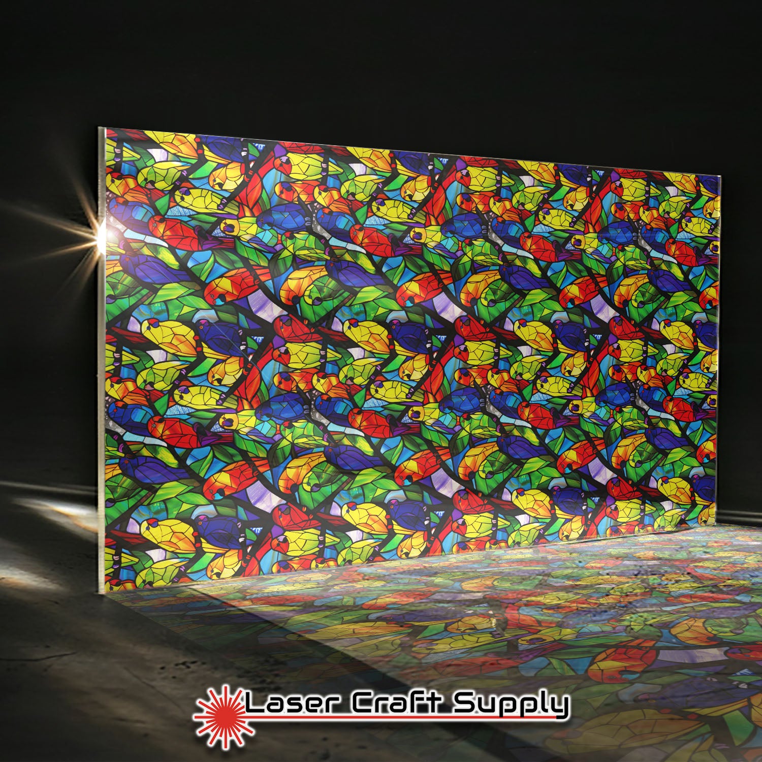 Cuts with Diode and CO2 Lasers, Image on Both Sides - One side is High Gloss and the other slightly Matte.