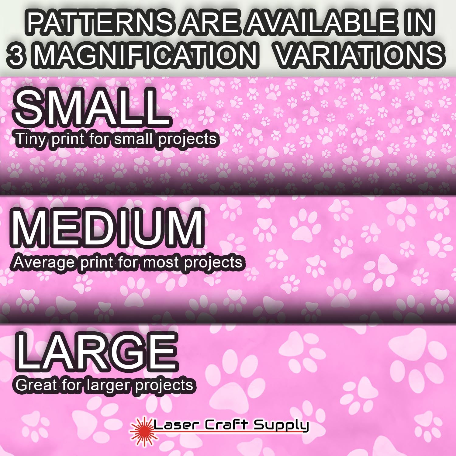 ALL SHEETS ARE 12" X 19" and Designs are available in 3 different Magnifications... Small, Medium and Large, and varies in thickness depending on the choice you make.