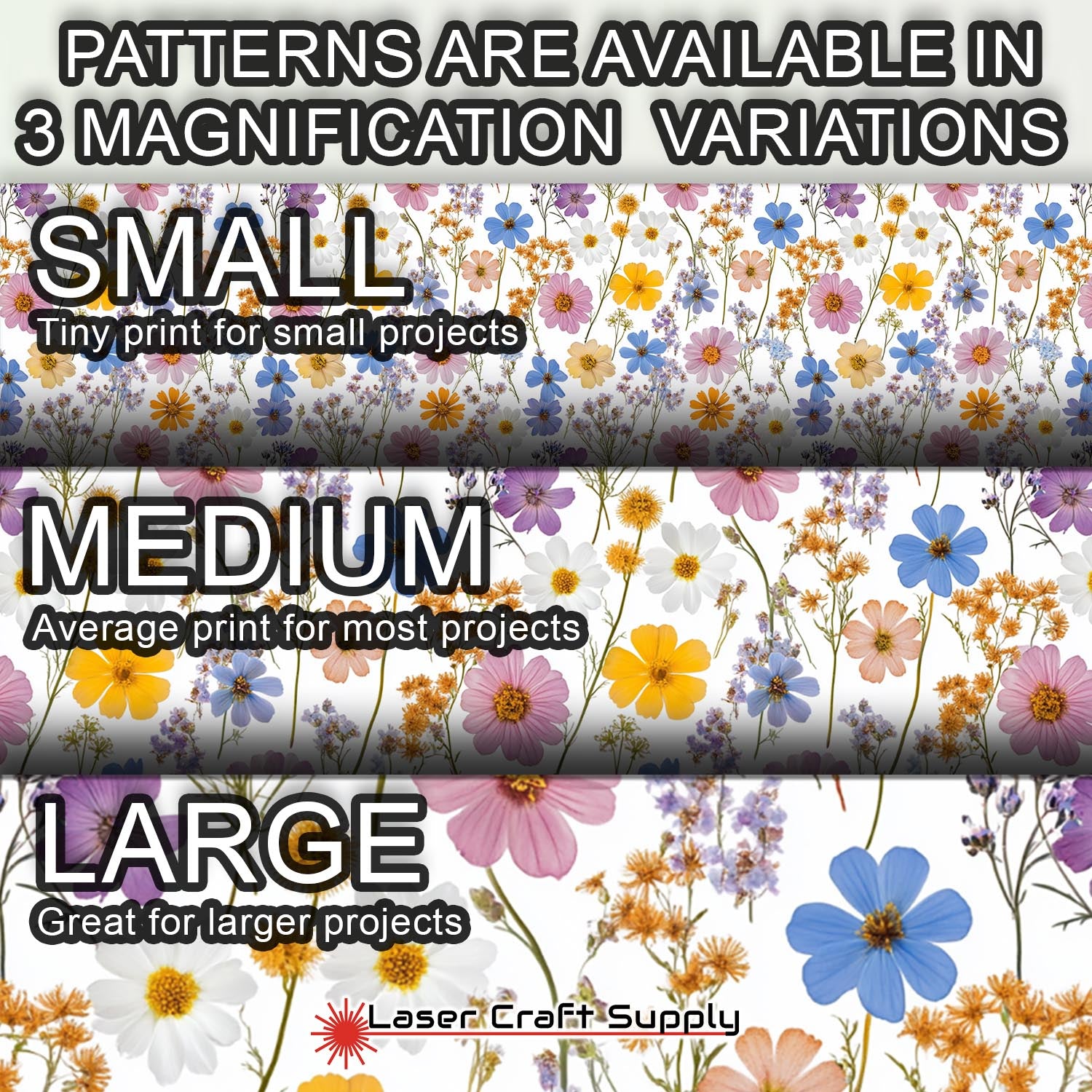 ALL SHEETS ARE 12" X 19" and Designs are available in 3 different Magnifications... Small, Medium and Large, and varies in thickness depending on the choice you make.