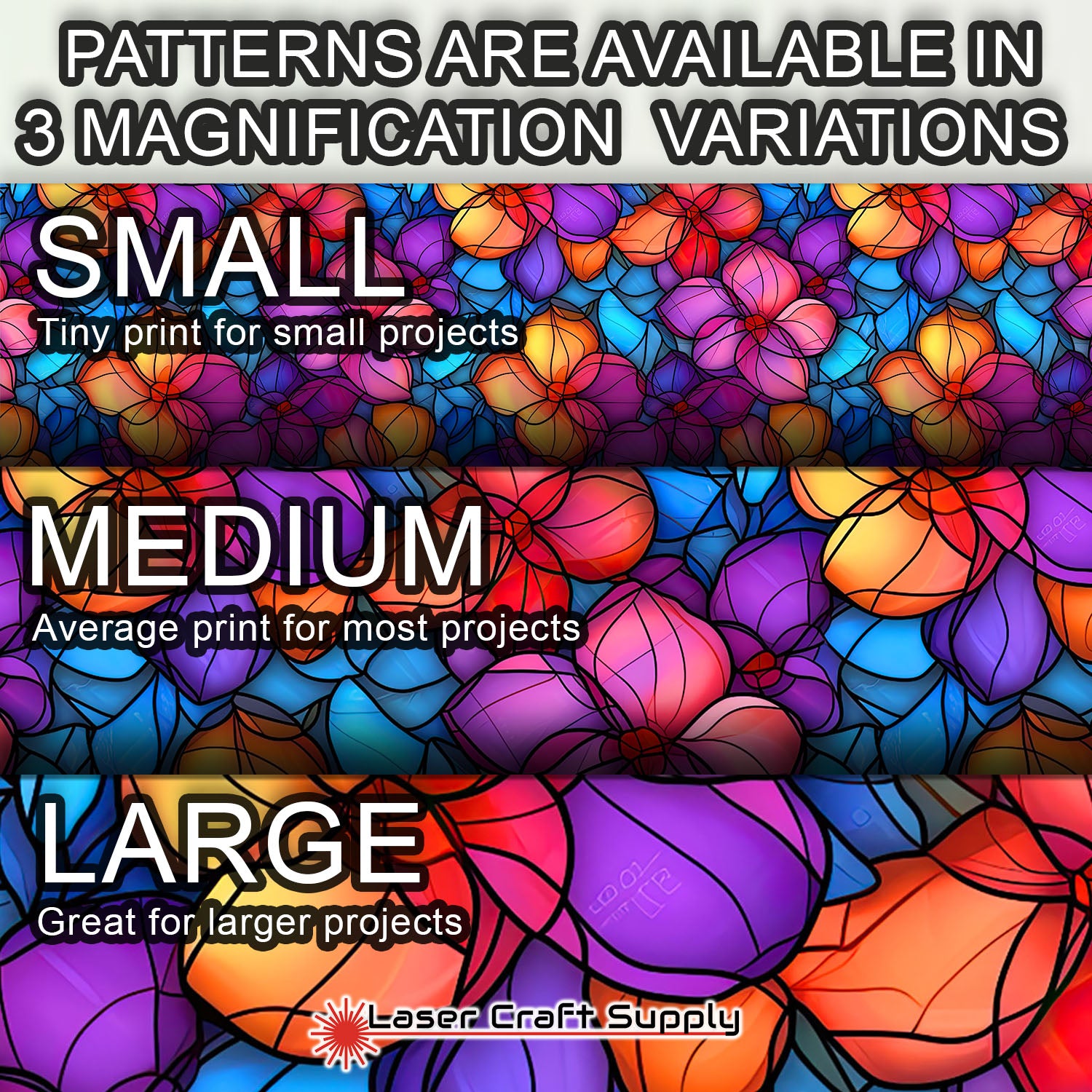ALL SHEETS ARE 12" X 19" and Designs are available in 3 different Magnifications... Small, Medium and Large, and varies in thickness depending on the choice you make.