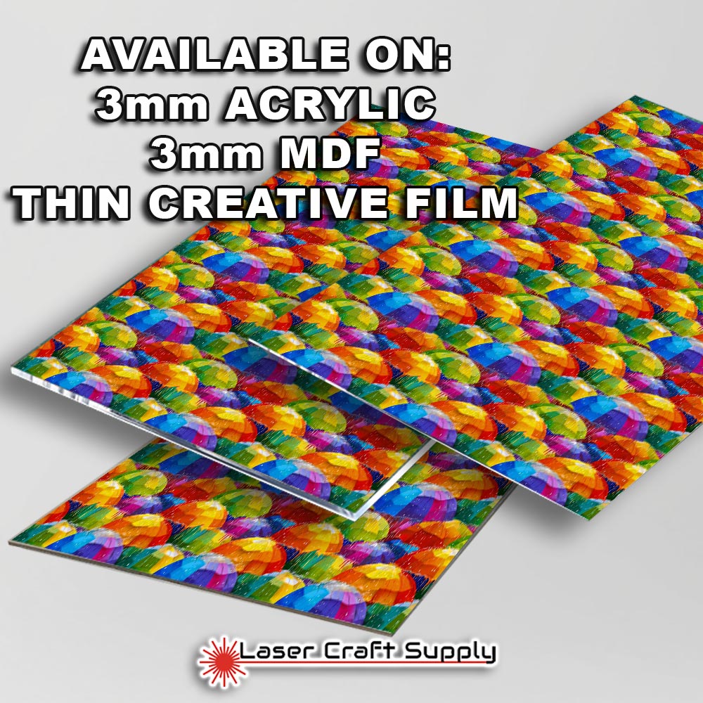 3mm MDF Wood: Cuts and Engraves with Diode and CO2 Lasers, Image on One Side or Both Sides.