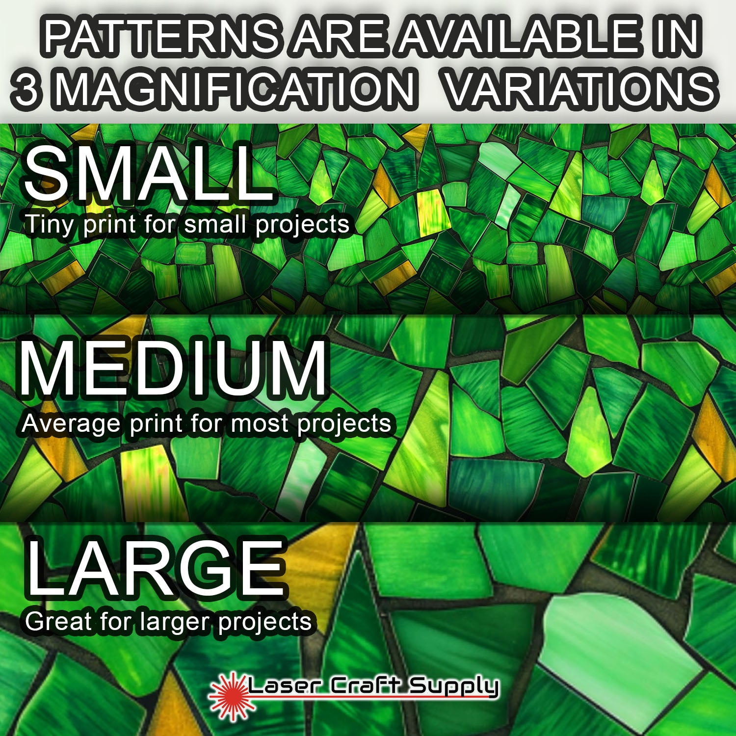 ALL SHEETS ARE 12" X 19" and Designs are available in 3 different Magnifications... Small, Medium and Large, and varies in thickness depending on the choice you make.