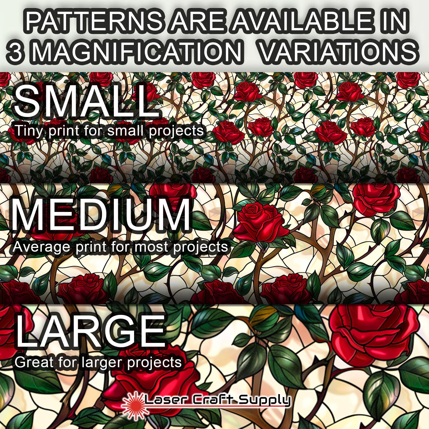 ALL SHEETS ARE 12" X 19" and Designs are available in 3 different Magnifications... Small, Medium and Large, and varies in thickness depending on the choice you make.