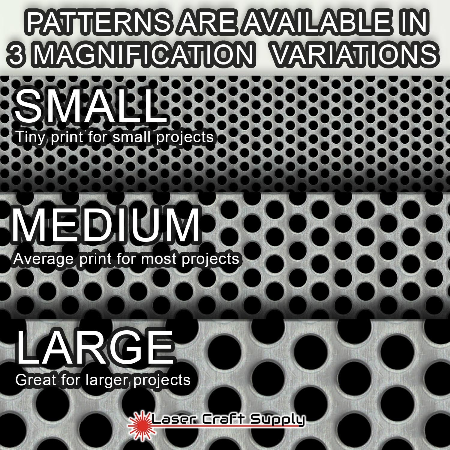 ALL SHEETS ARE 12" X 19" and Designs are available in 3 different Magnifications... Small, Medium and Large, and varies in thickness depending on the choice you make.
