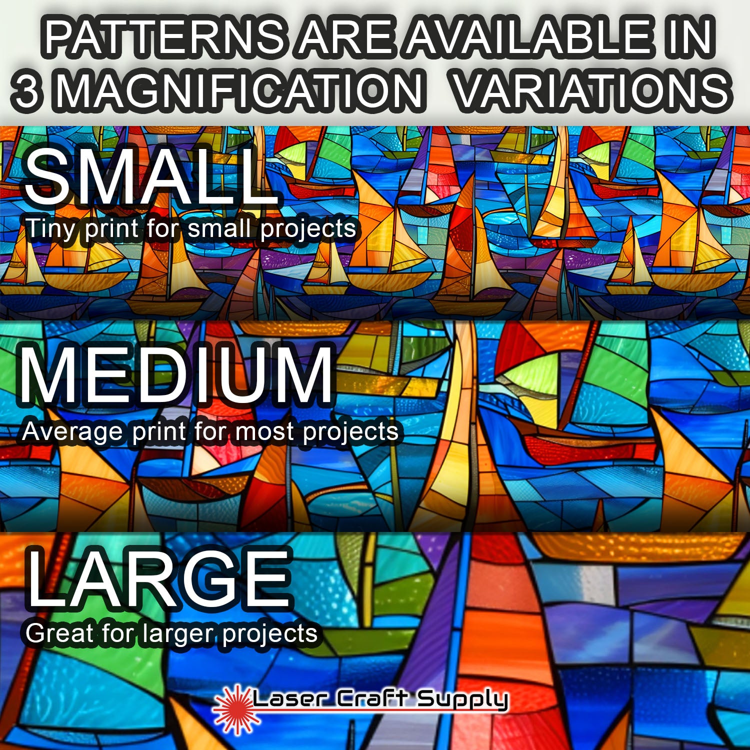 ALL SHEETS ARE 12" X 19" and Designs are available in 3 different Magnifications... Small, Medium and Large, and varies in thickness depending on the choice you make.