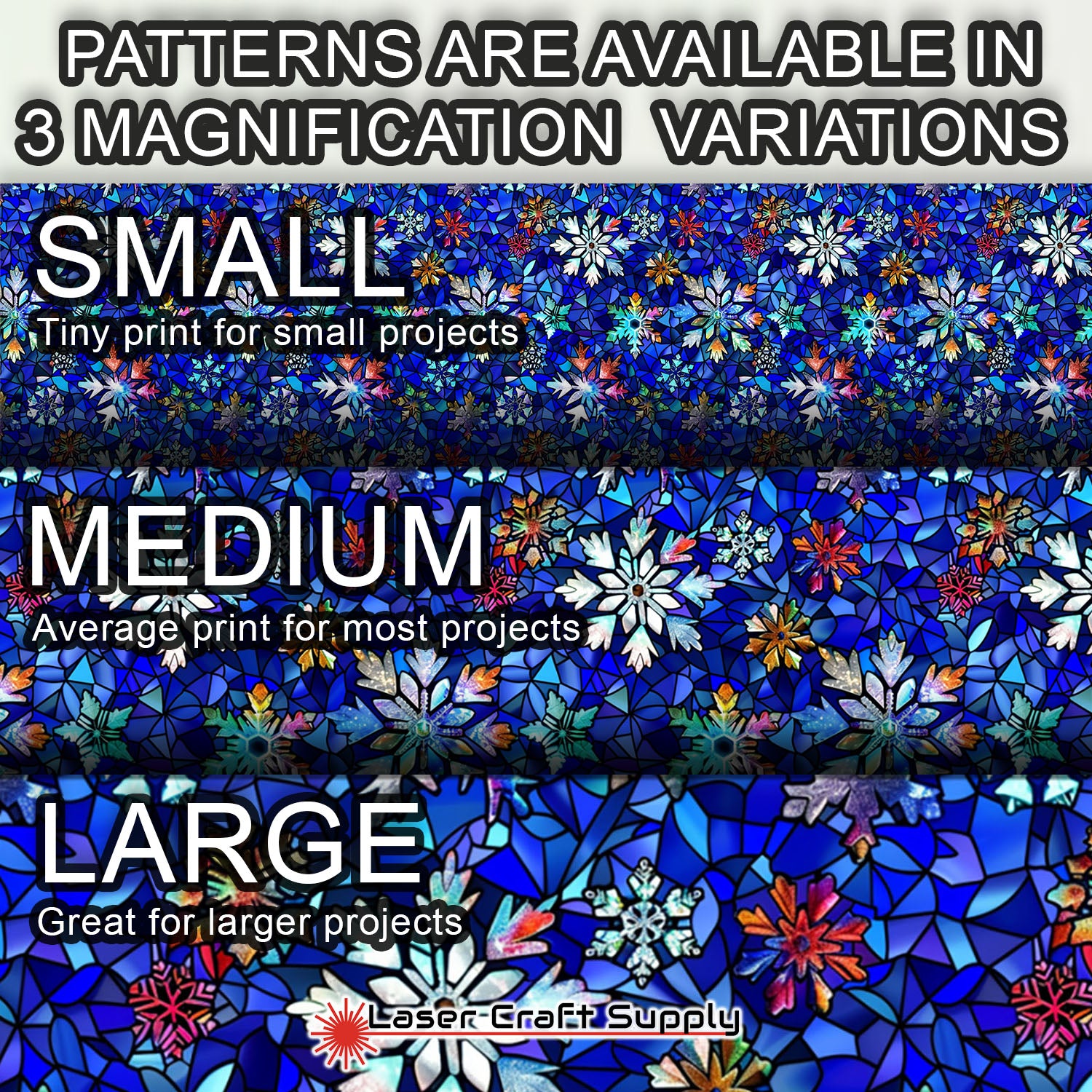ALL SHEETS ARE 12" X 19" and Designs are available in 3 different Magnifications... Small, Medium and Large, and varies in thickness depending on the choice you make.