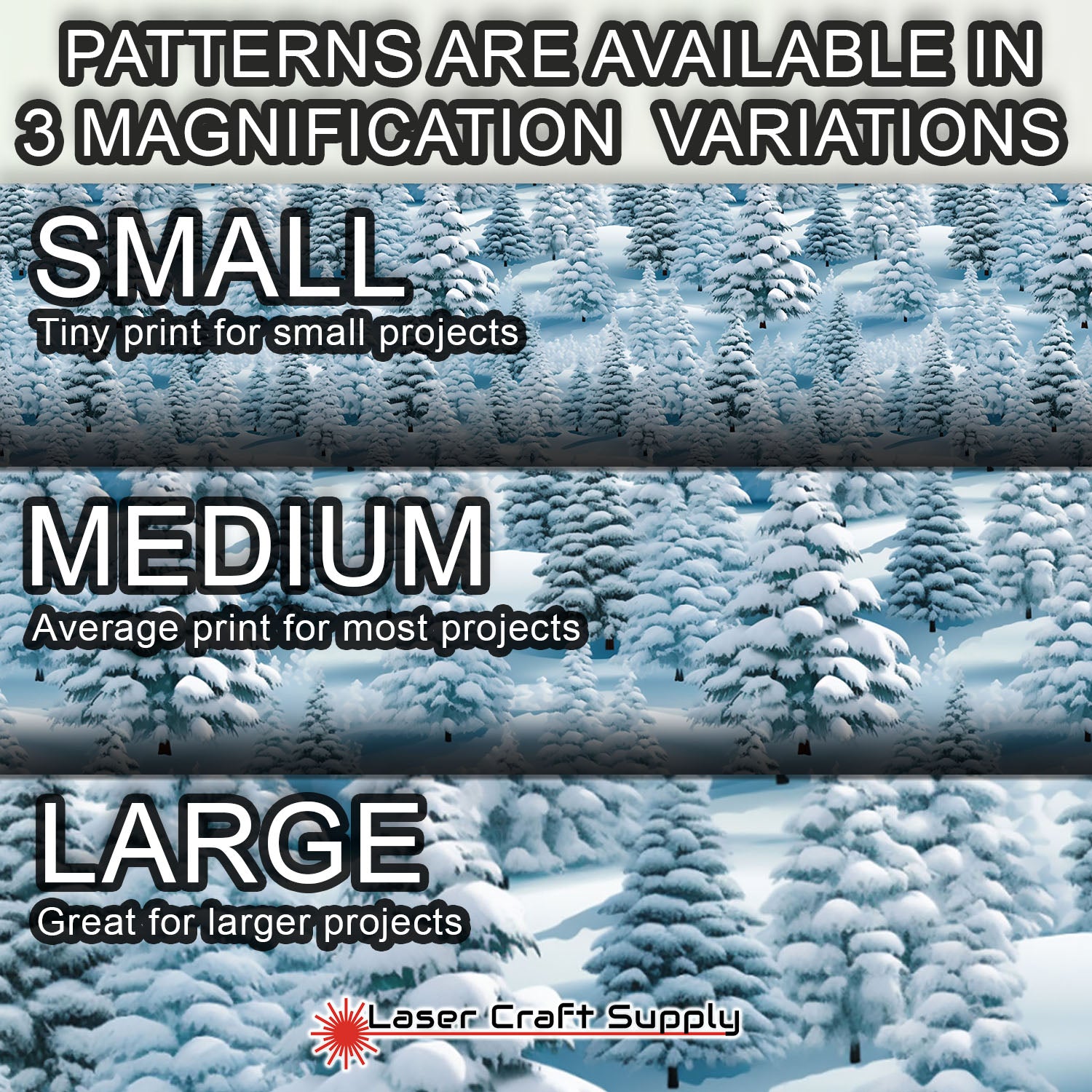 ALL SHEETS ARE 12" X 19" and Designs are available in 3 different Magnifications... Small, Medium and Large, and varies in thickness depending on the choice you make.