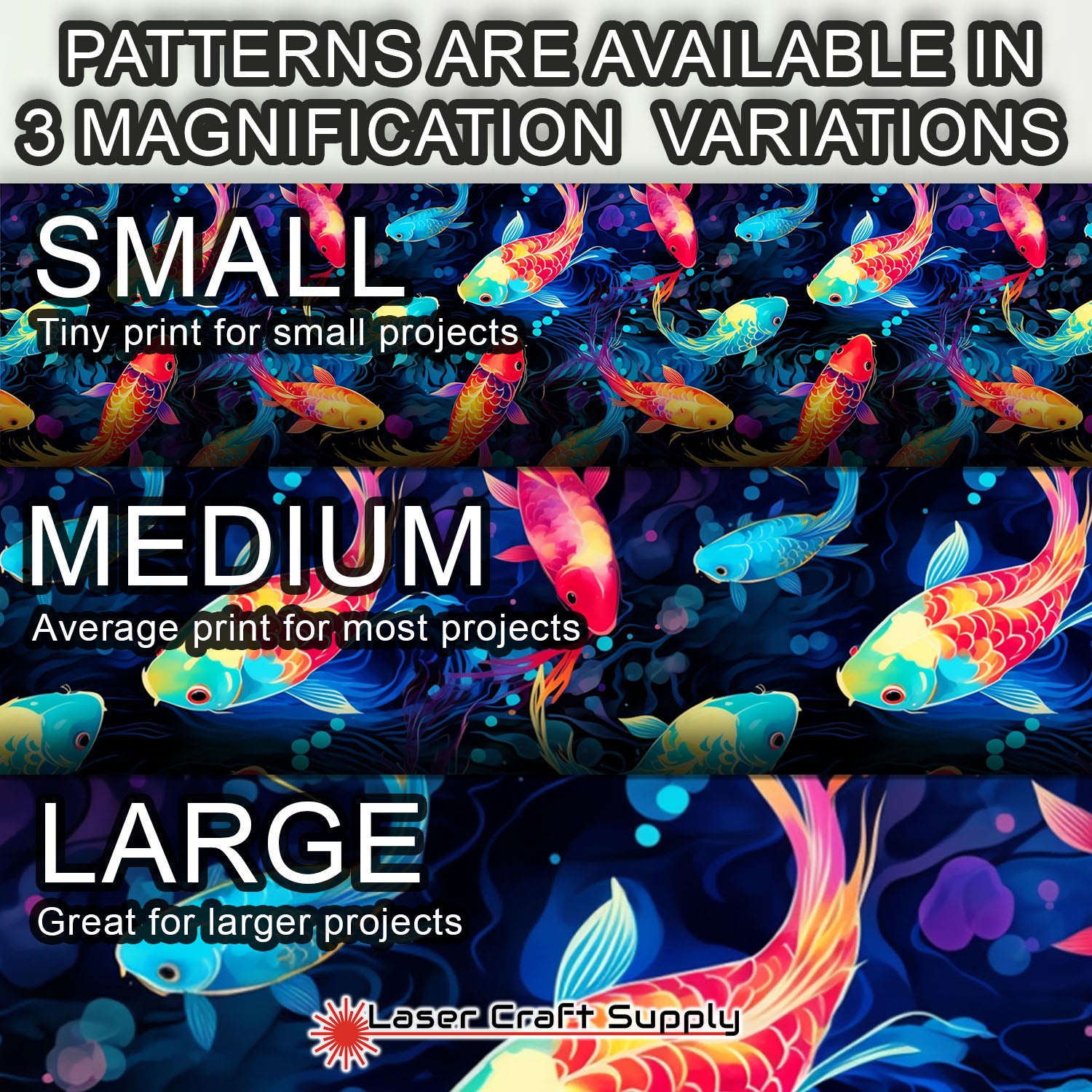ALL SHEETS ARE 12" X 19" and Designs are available in 3 different Magnifications... Small, Medium and Large, and varies in thickness depending on the choice you make.