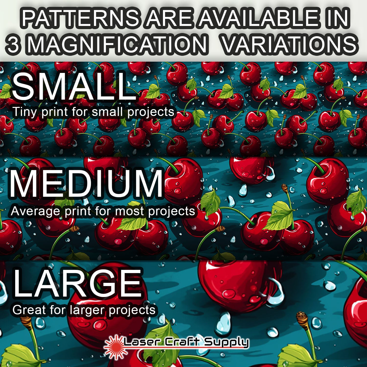 ALL SHEETS ARE 12" X 19" and Designs are available in 3 different Magnifications... Small, Medium and Large, and varies in thickness depending on the choice you make.