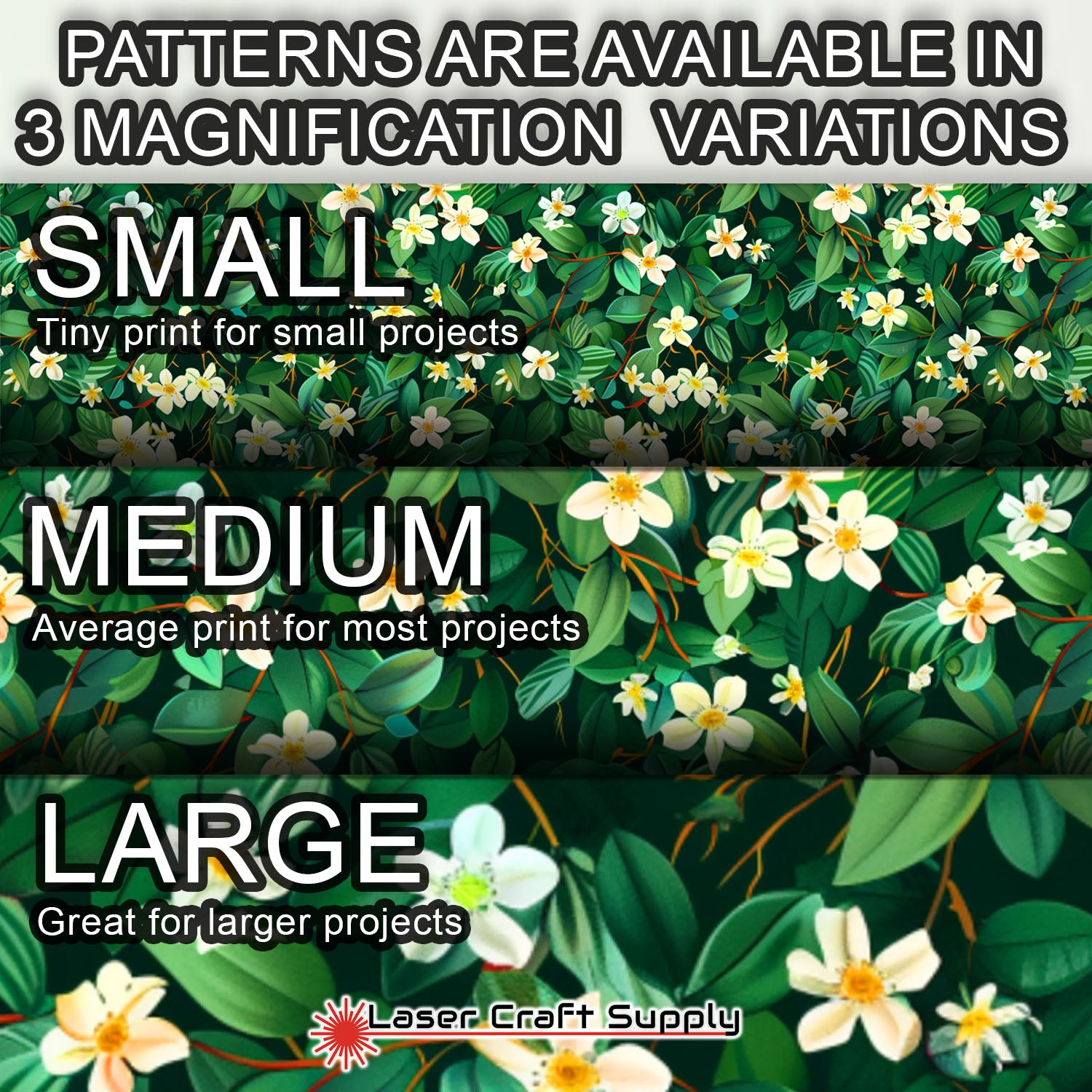ALL SHEETS ARE 12" X 19" and Designs are available in 3 different Magnifications... Small, Medium and Large, and varies in thickness depending on the choice you make.