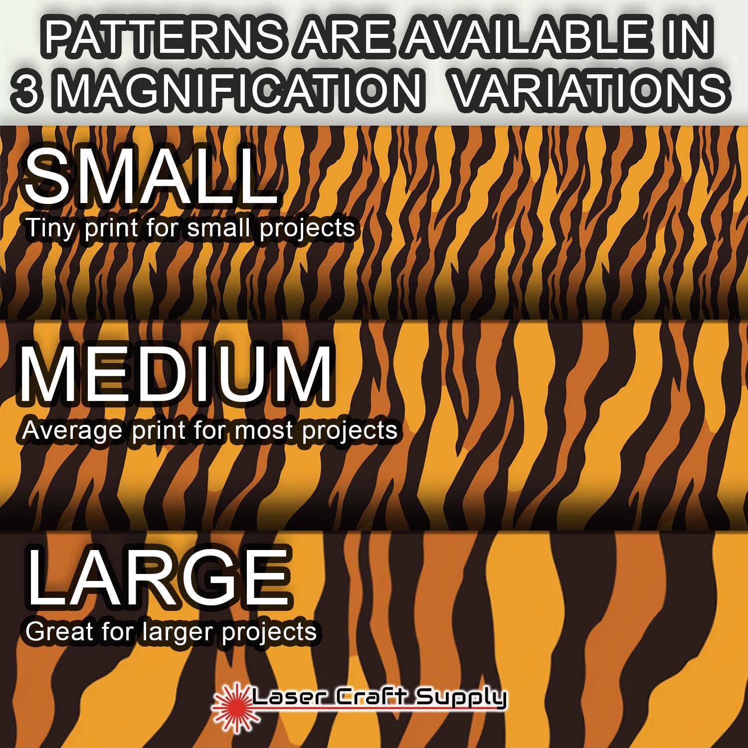 ALL SHEETS ARE 12" X 19" and Designs are available in 3 different Magnifications... Small, Medium and Large, and varies in thickness depending on the choice you make.