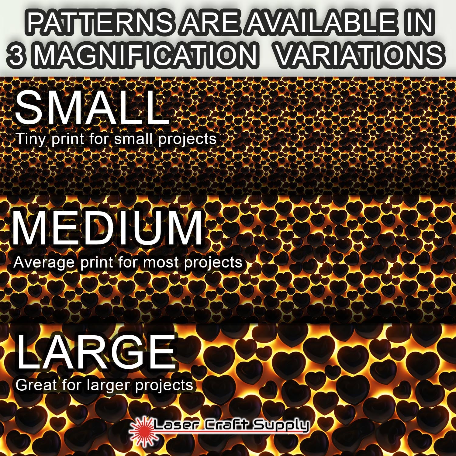 ALL SHEETS ARE 12" X 19" and Designs are available in 3 different Magnifications... Small, Medium and Large, and varies in thickness depending on the choice you make.