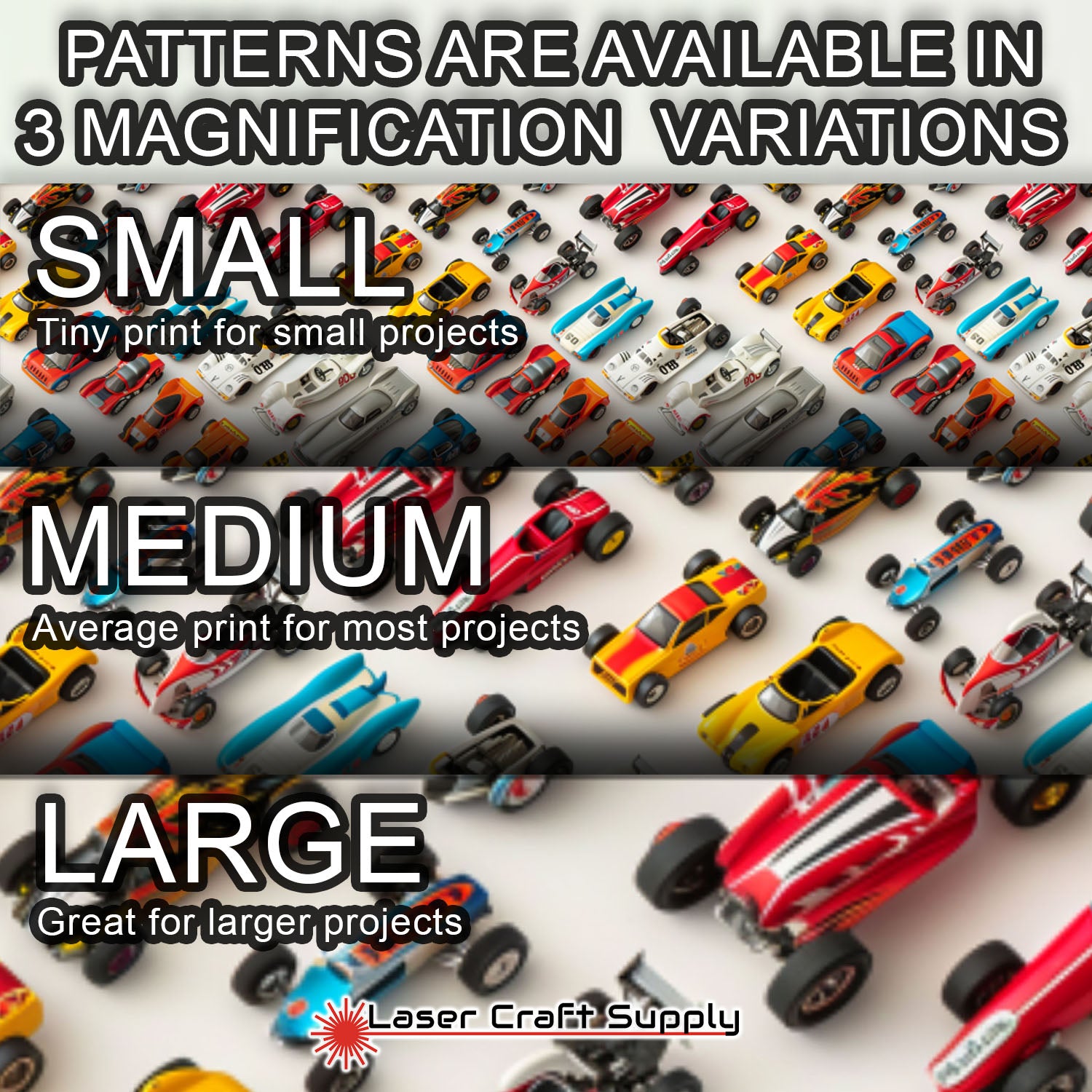 ALL SHEETS ARE 12" X 19" and Designs are available in 3 different Magnifications... Small, Medium and Large, and varies in thickness depending on the choice you make.