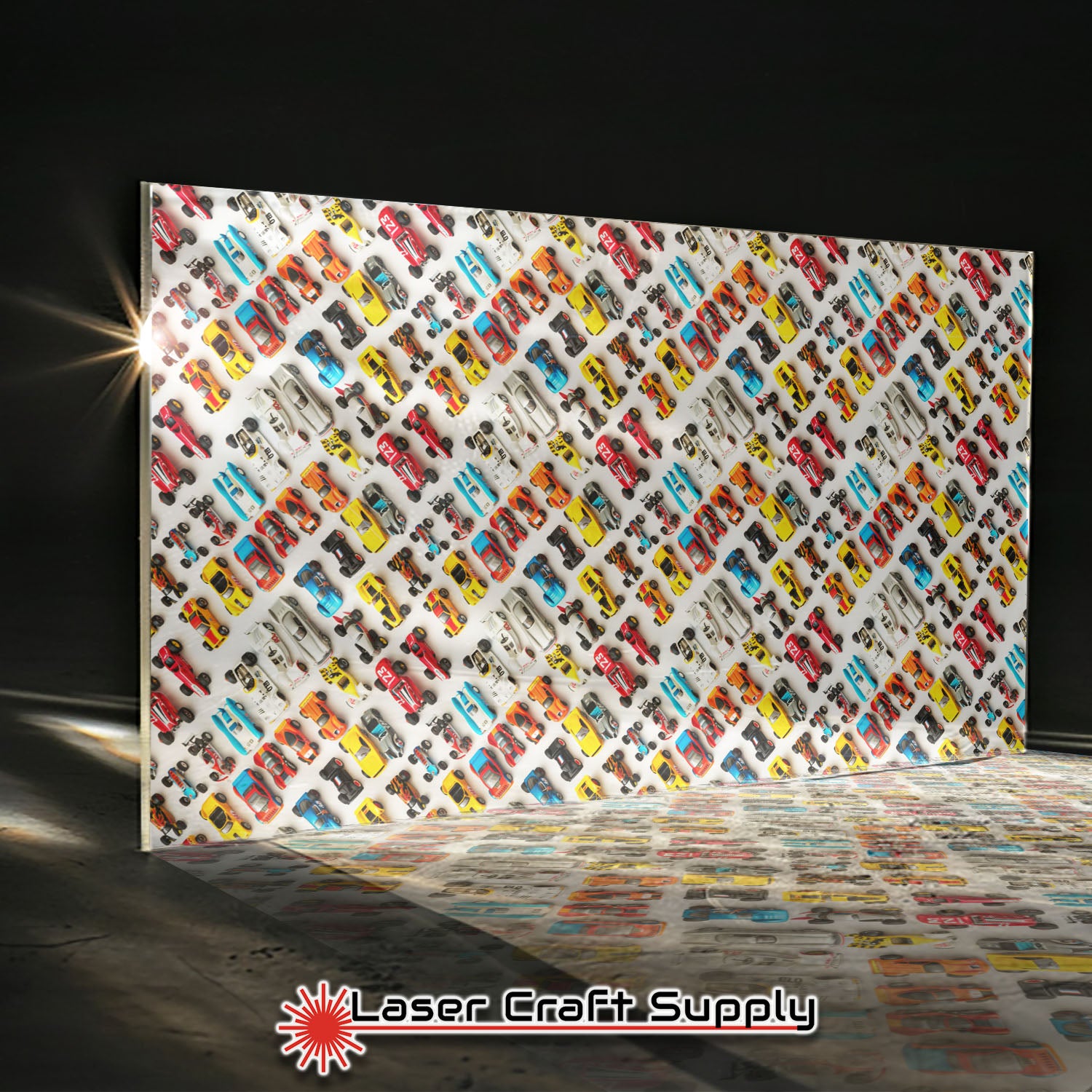 Cuts with Diode and CO2 Lasers, Image on Both Sides - One side is High Gloss and the other slightly Matte.