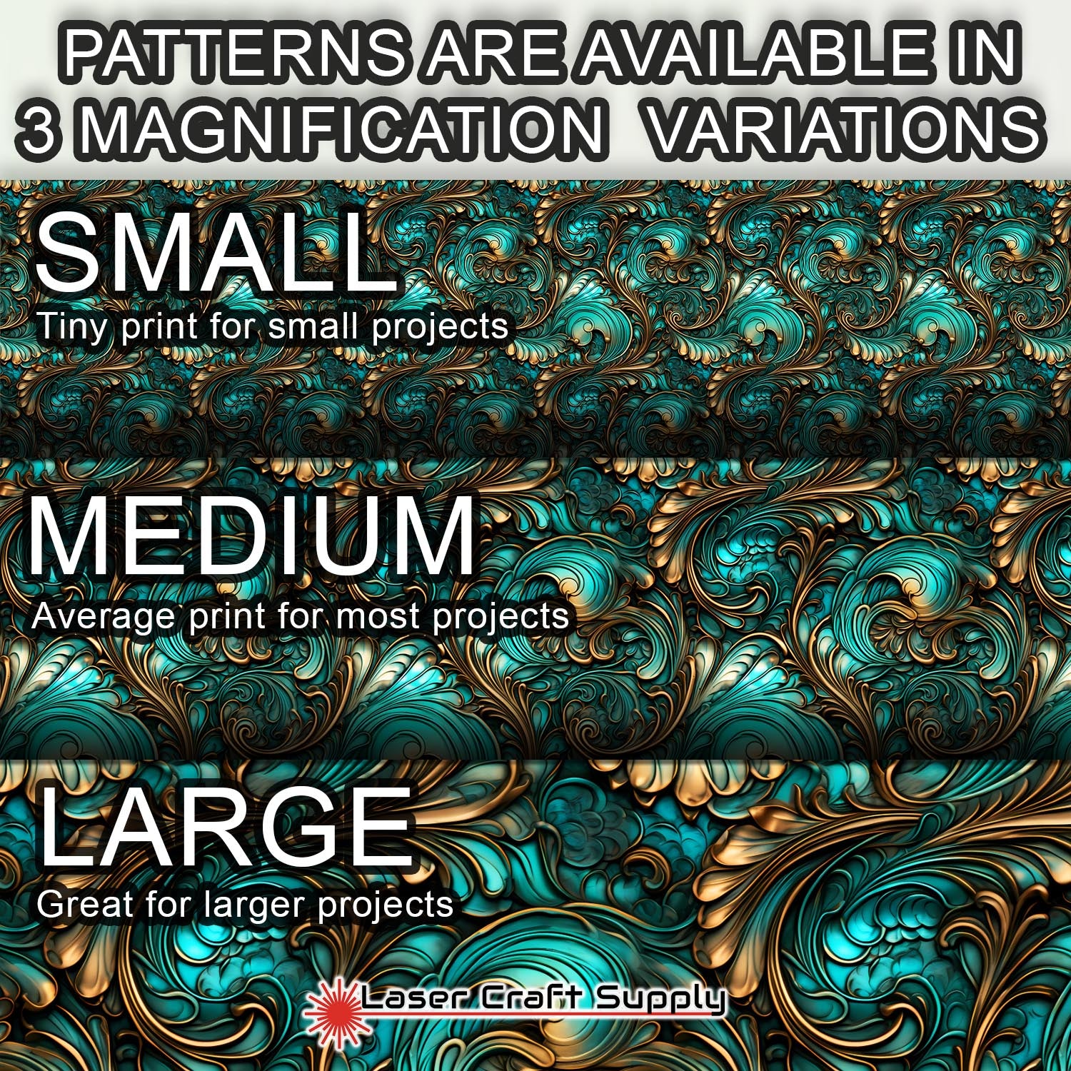 ALL SHEETS ARE 12" X 19" and Designs are available in 3 different Magnifications... Small, Medium and Large, and varies in thickness depending on the choice you make.