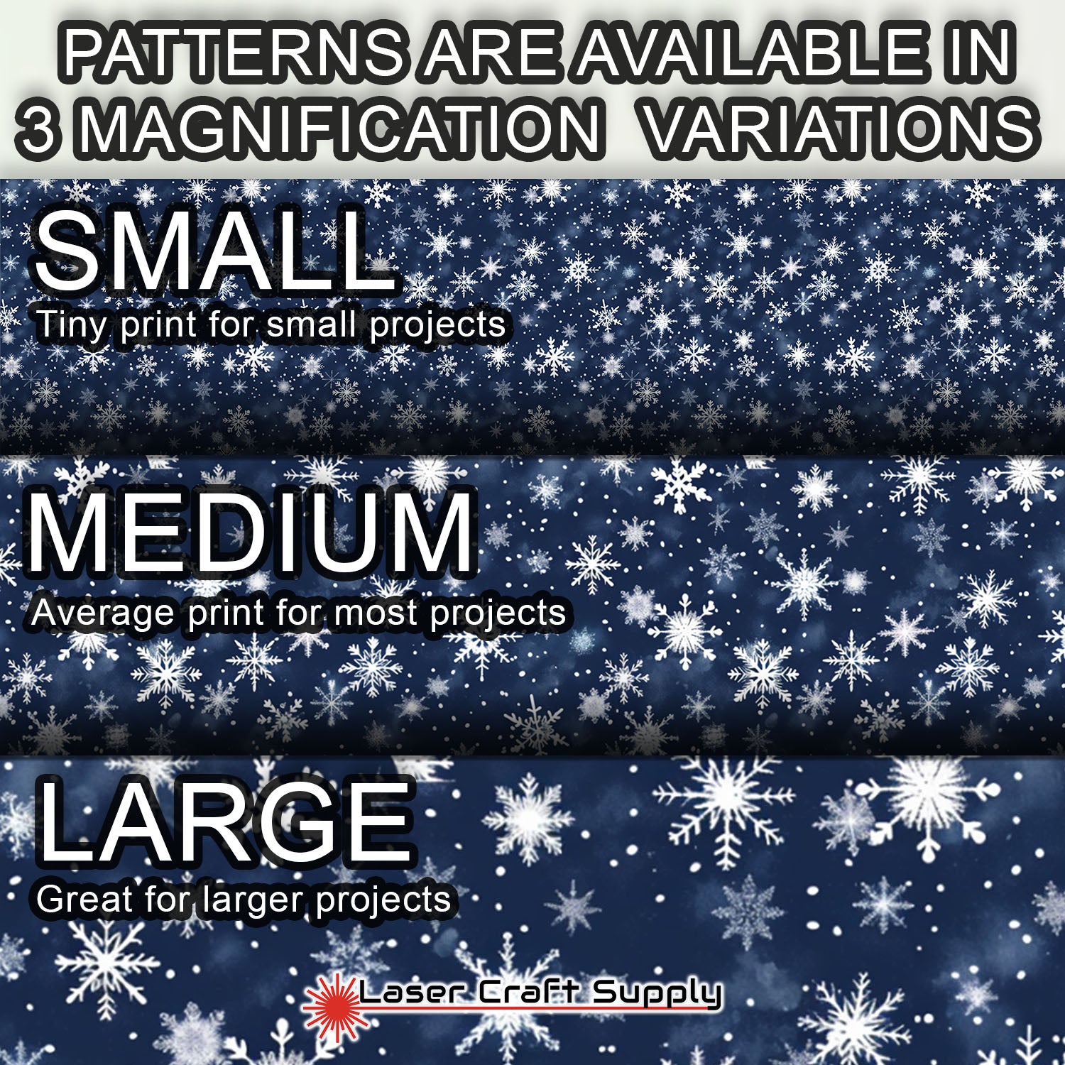 ALL SHEETS ARE 12" X 19" and Designs are available in 3 different Magnifications... Small, Medium and Large, and varies in thickness depending on the choice you make.