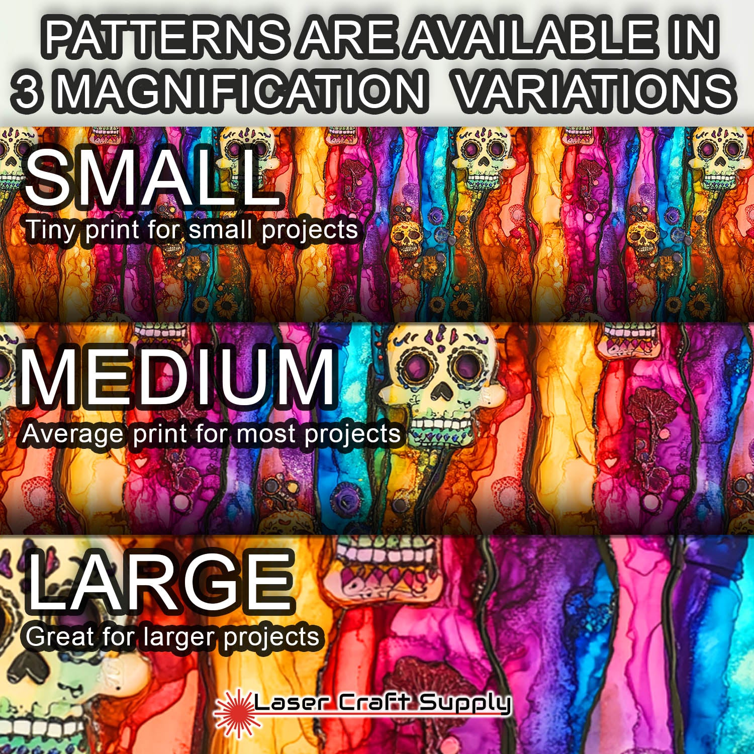 ALL SHEETS ARE 12" X 19" and Designs are available in 3 different Magnifications... Small, Medium and Large, and varies in thickness depending on the choice you make.